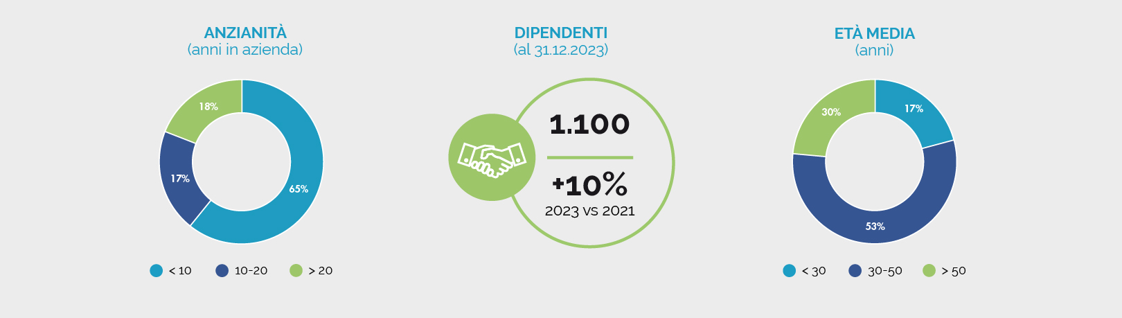 A testimonianza dell’impegno del gruppo per uno sviluppo sostenibile e una crescita strategica a favore delle tematiche ESG (Environmental, Social and Governance) nelle attività di business, nel 2023 abbiamo realizzato il nostro primo Piano di Sostenibilità per il 2023-2026, volto quest’ultimo al monitoraggio continuo dei progetti e dei risultati.