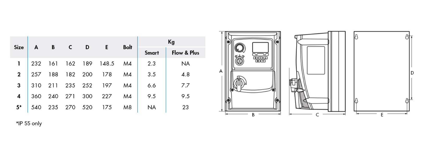 | Degree of protection | IP 55 |